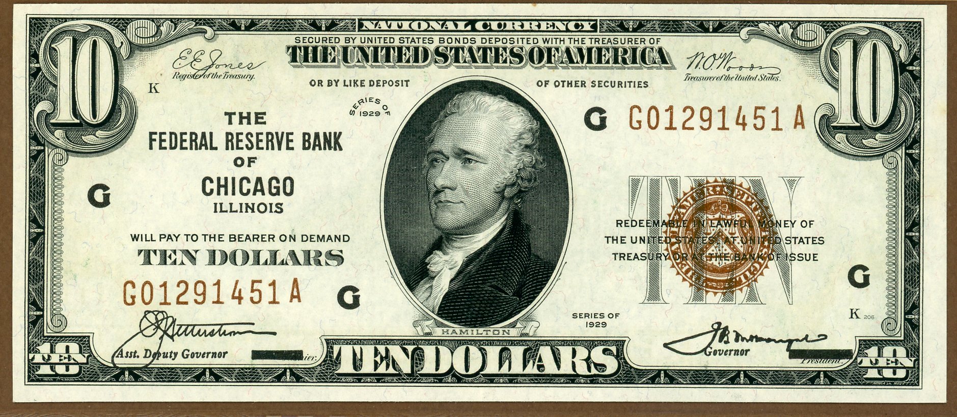 1929 $10 Federal Reserve Bank Note FR1860-G PMG AU58EPQ Chicago Illinois S/N G01291451A