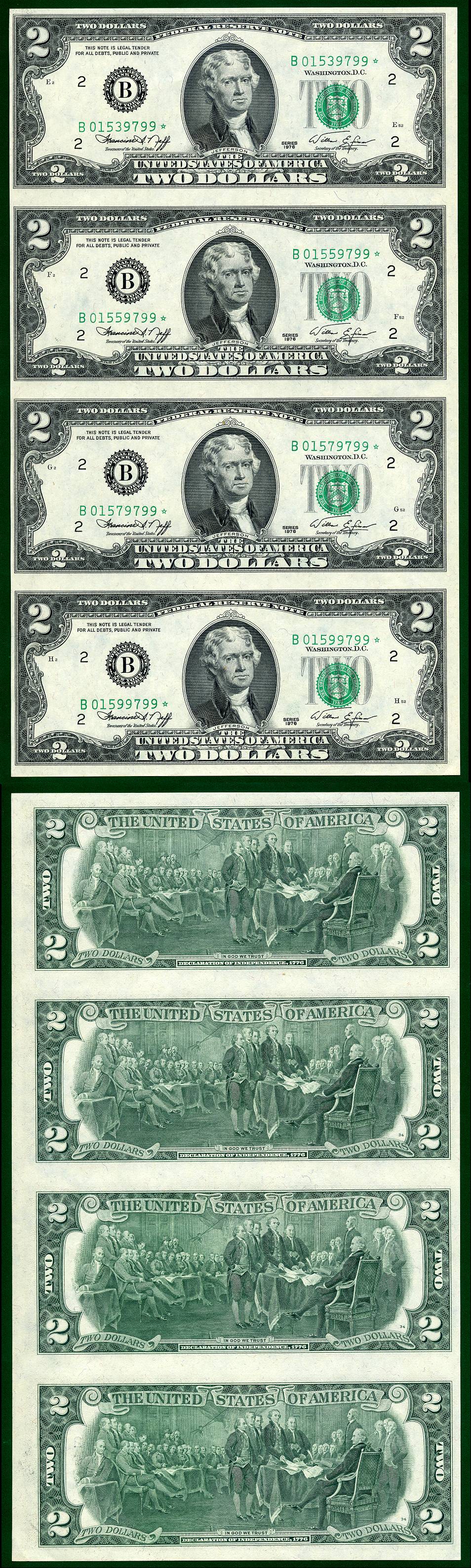 1976 $2 Federal Reserve Star 4 Note Uncut Sheet S/N B01539799*