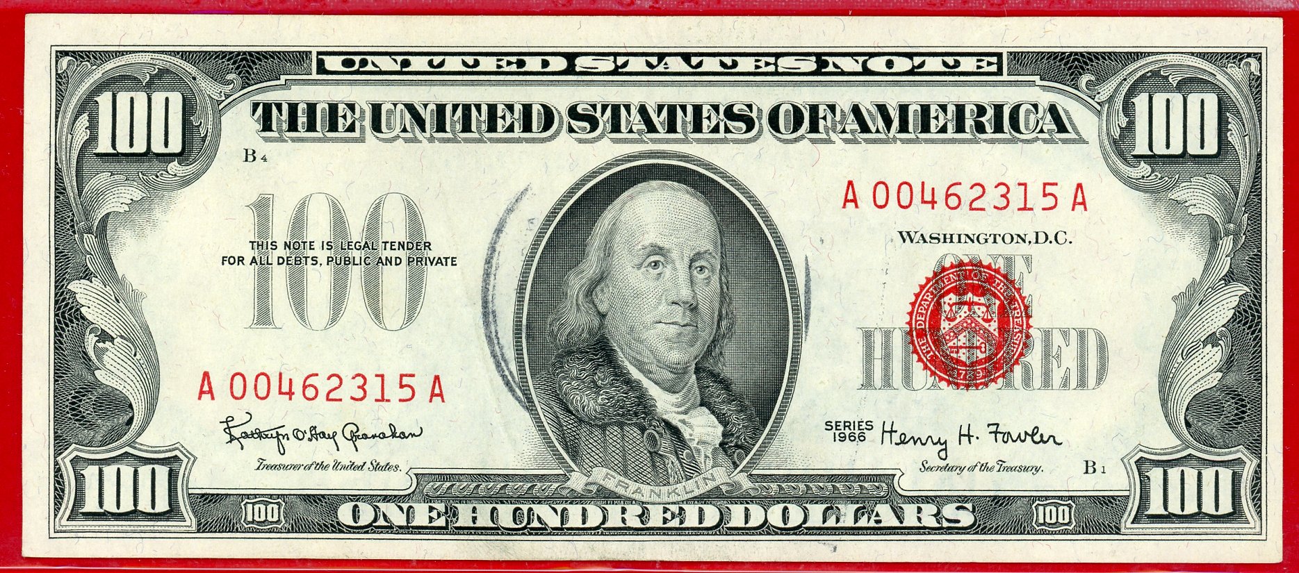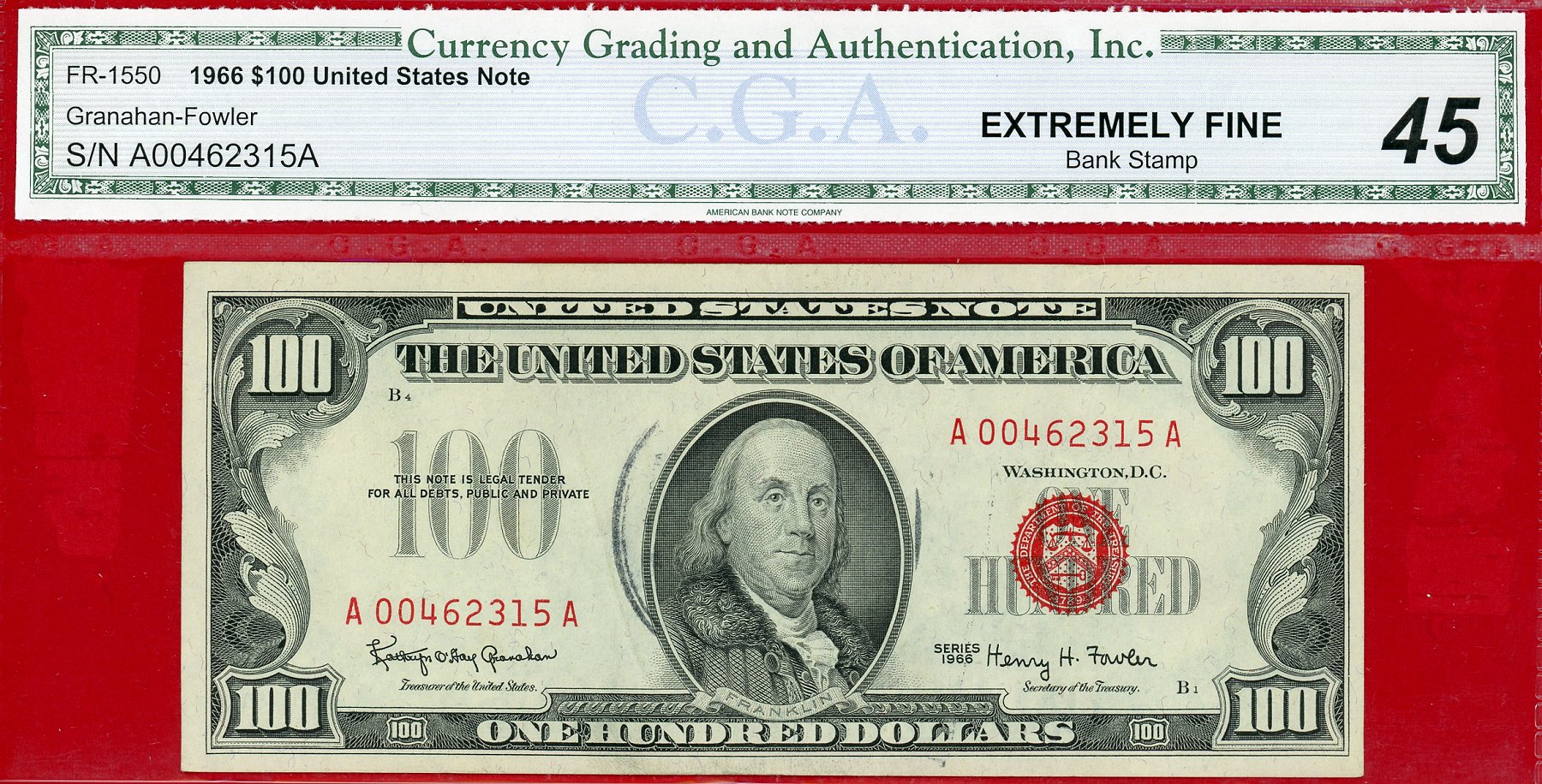 1966 $100 United States Legal Tender Note FR-1550 S/N A00462315A
