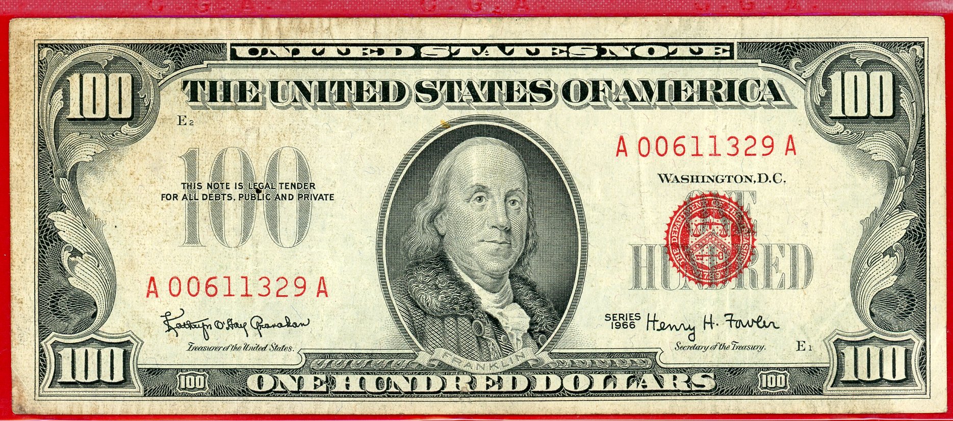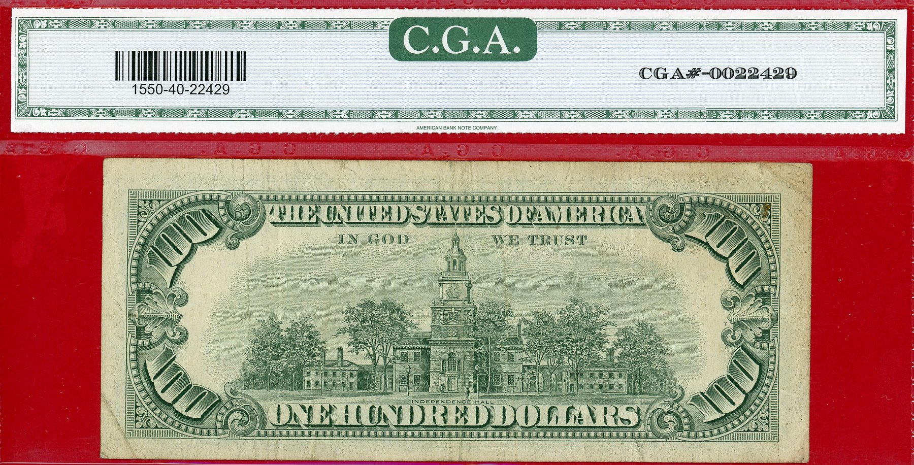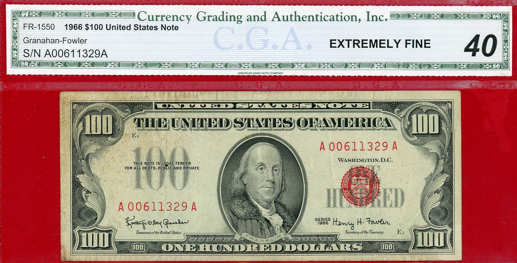 1966 $100 United States Legal Tender FR-1550 CGA Graded EF40 S/N A 00611329