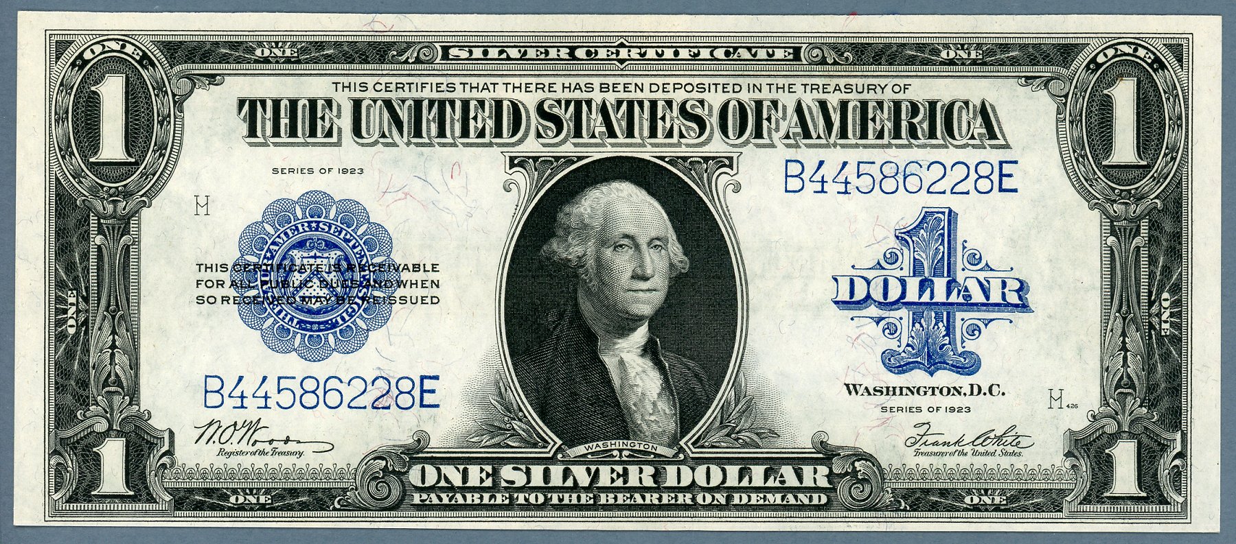 1923 $1 Silver Certificate FR-238 PMG CU63EPQ S/N B44586228E #2 of 5 Consecutive