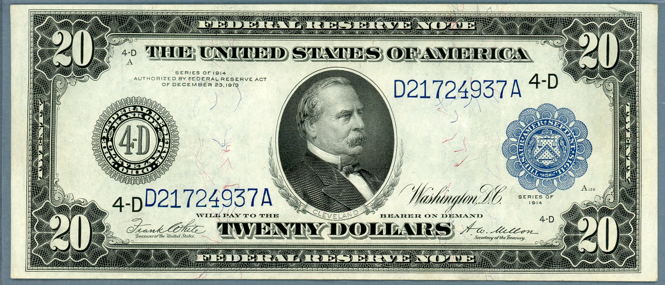 1914 $20 Federal Reserve Note FR-979A Cleveland Ohio PCGS EF40 S/N D21724937A